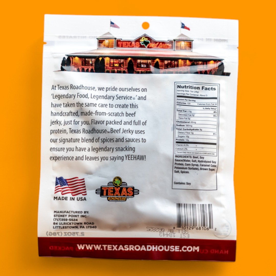 Delicious beef jerky with a zesty Texas Roadhouse-inspired seasoning blend. Hand cut, hand strung, hand packed. Resealable Bag: Convenient resealable pouch ensures freshness and allows for easy storage.